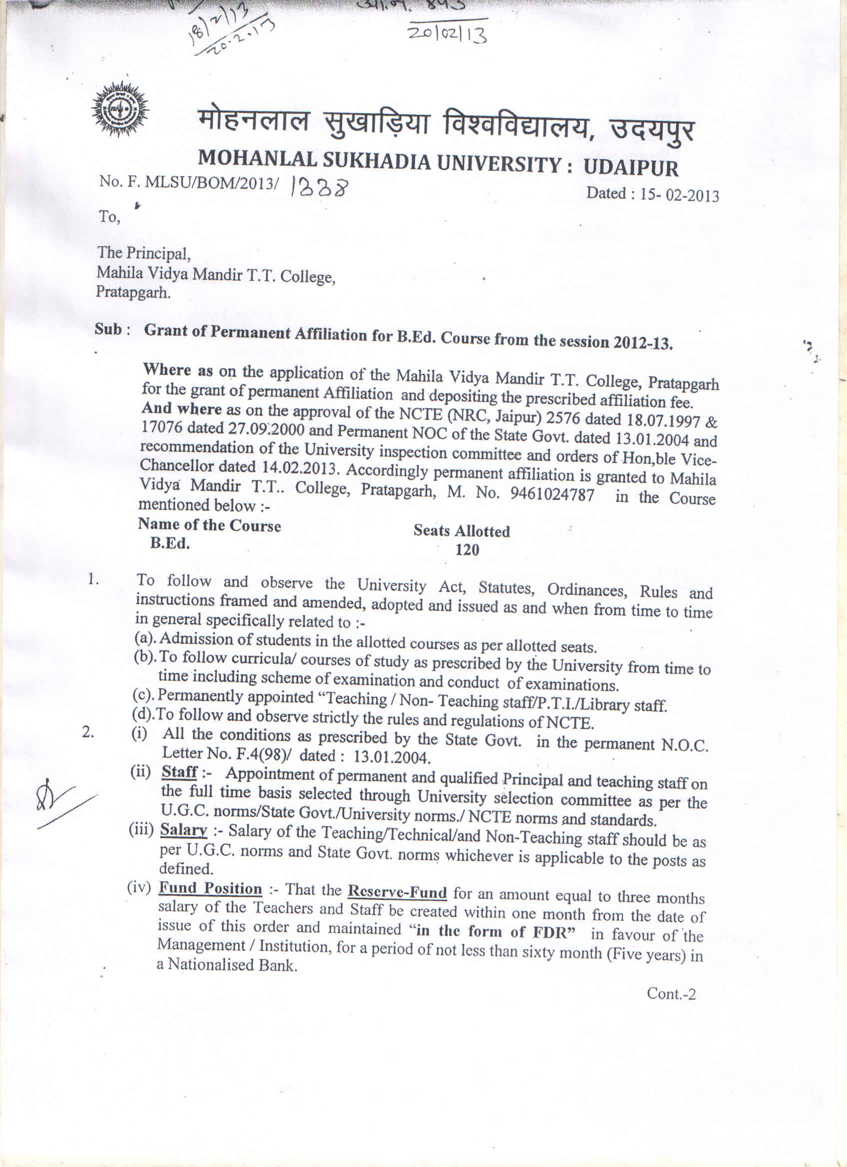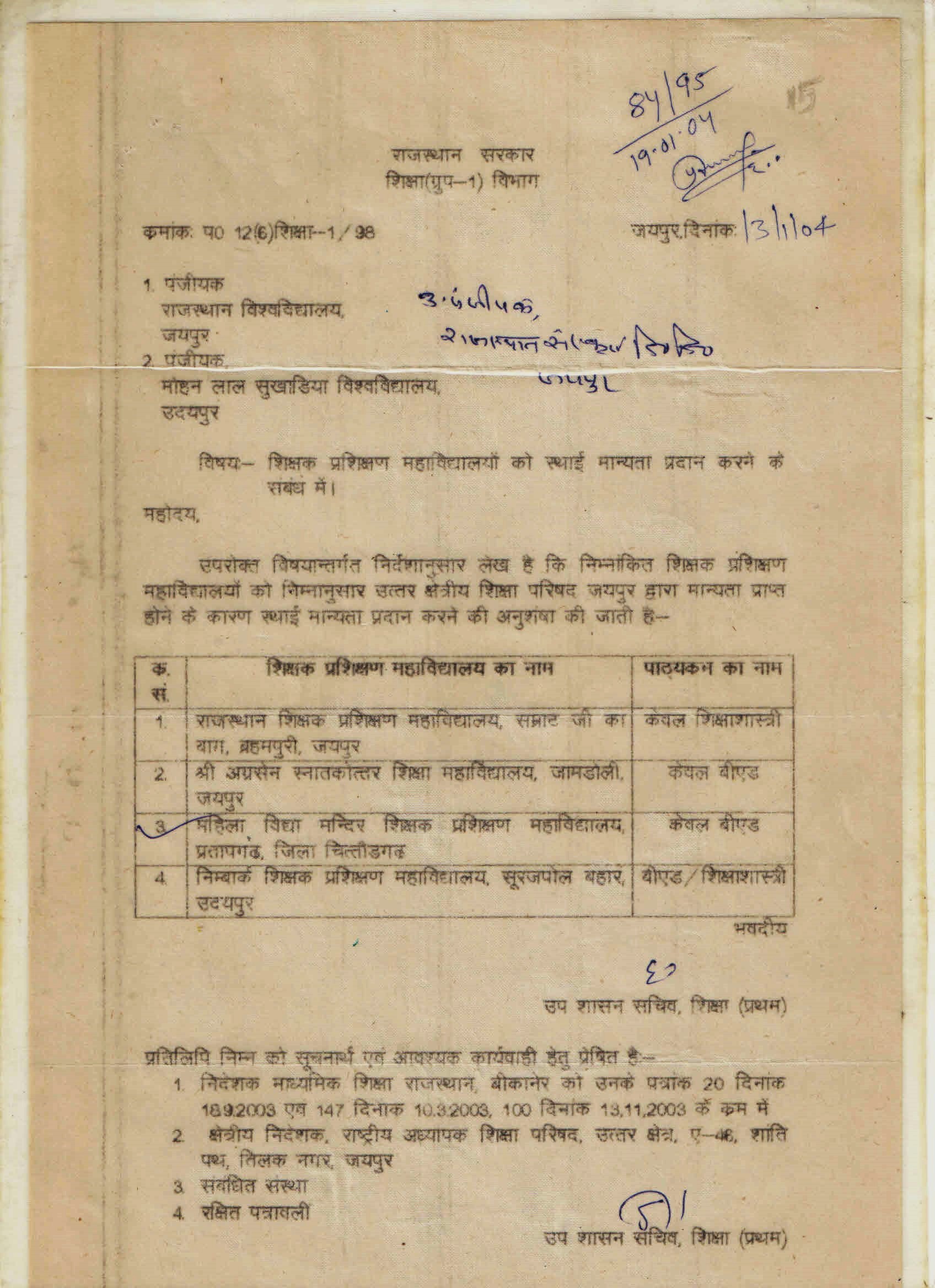 | PERMANENT AFFILIATION GOVT | |